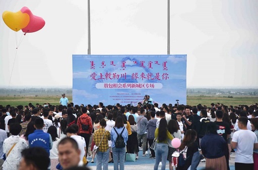 活動當天,1300余名單身青年乘坐26輛愛情專車相聚在浪漫的敕勒川草原?;顒又校佑螒?、環(huán)湖騎行、大屏彈幕、漫步草原棧道等環(huán)節(jié)有序開展,讓相聚在一起的陌生青年男女在有趣的游戲和浪漫的環(huán)境中彼此了解、相互熟悉,拉近了大家的距離,搭起了一座座情感交流的橋梁。這次浪漫的大型相親活動為單身青年男女創(chuàng)造了一個良好的交友、交流平臺。